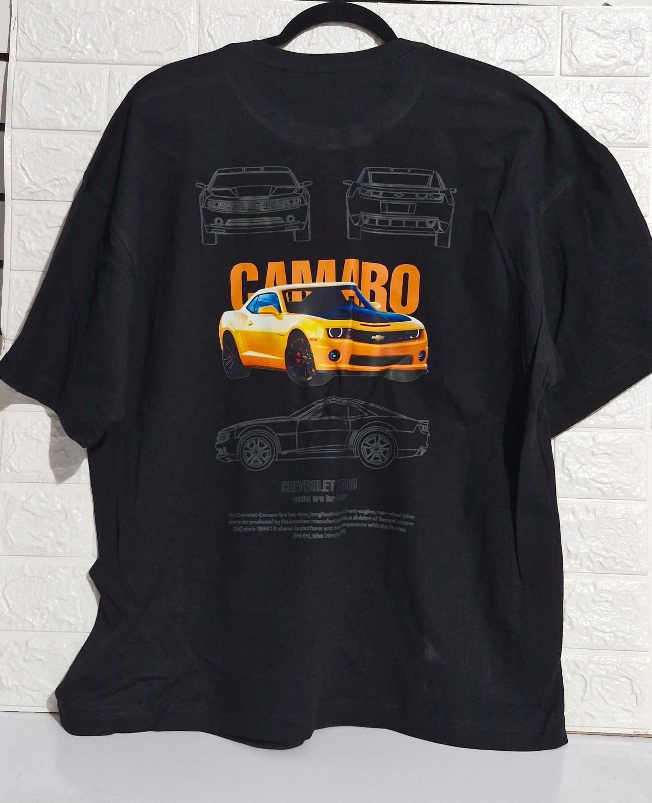 Playera Oversize Camaro Amarillo Frontal Posterior $300.00 Caracteristicas La mejor versión de una Playera tipo Premium con una composición 100% algodón. 180 gr de peso. Personalizada en DTF téxtil de la más alta calidad. Colores Negro Tallas Oversize Grande Playeras Inicio